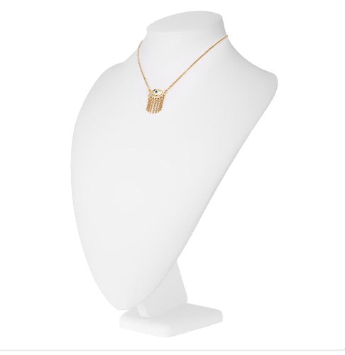 Gold plated necklace with crystal stones and blue, white and black enamel. 42cm +10cm ext.