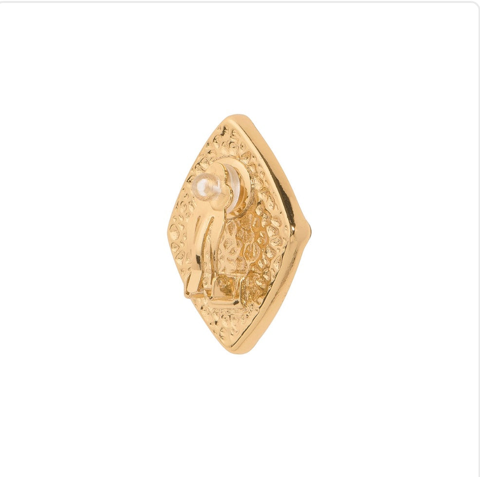 Description: Earrings GOLD PLATED CLIP EARRINGS IN MOTHER OF PEARL AND CRYSTAL COLORED STONES.