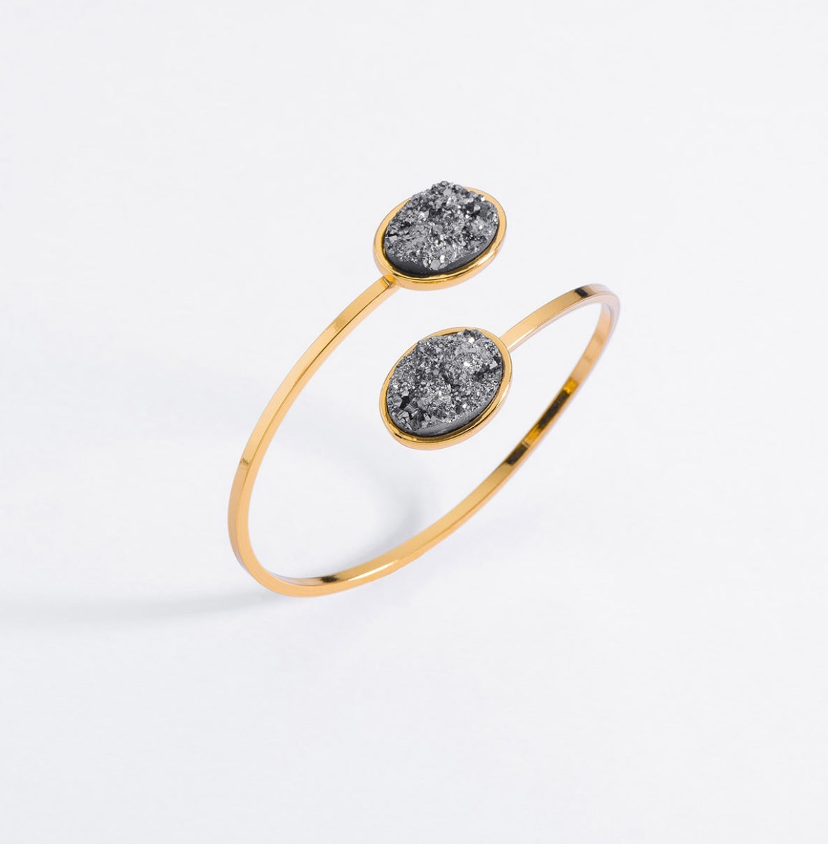Description: Bracelet ADJUSTABLE GOLD PLATED BRACELET WITH GRAY STONES