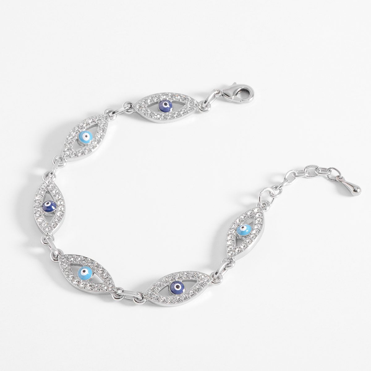 Special bracelet in Platinum Plating with a motif of evil eyes with different colors